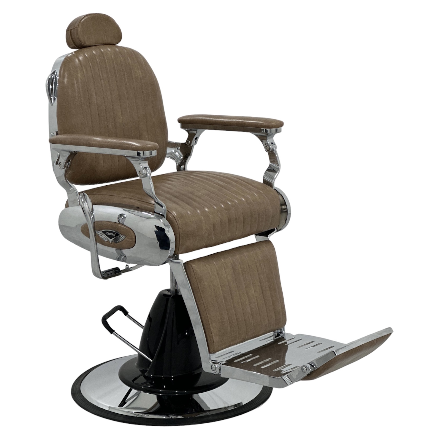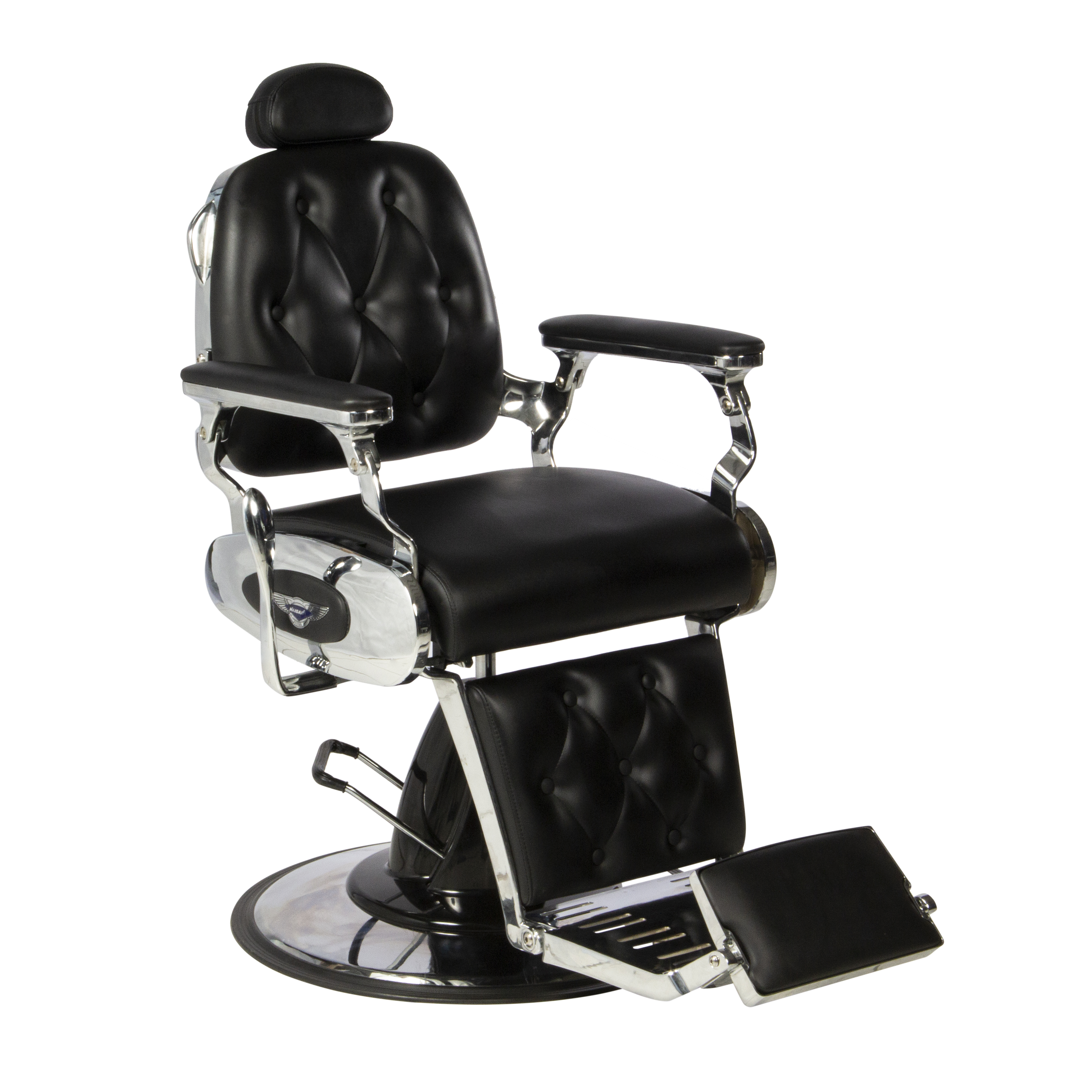 Nero é poltrona para barbearia, para ambientes que vão do vintage ao retrô. Linhas elegantes e estofamento com capitonê no encosto e apoio de pernas valorizam a cadeira.