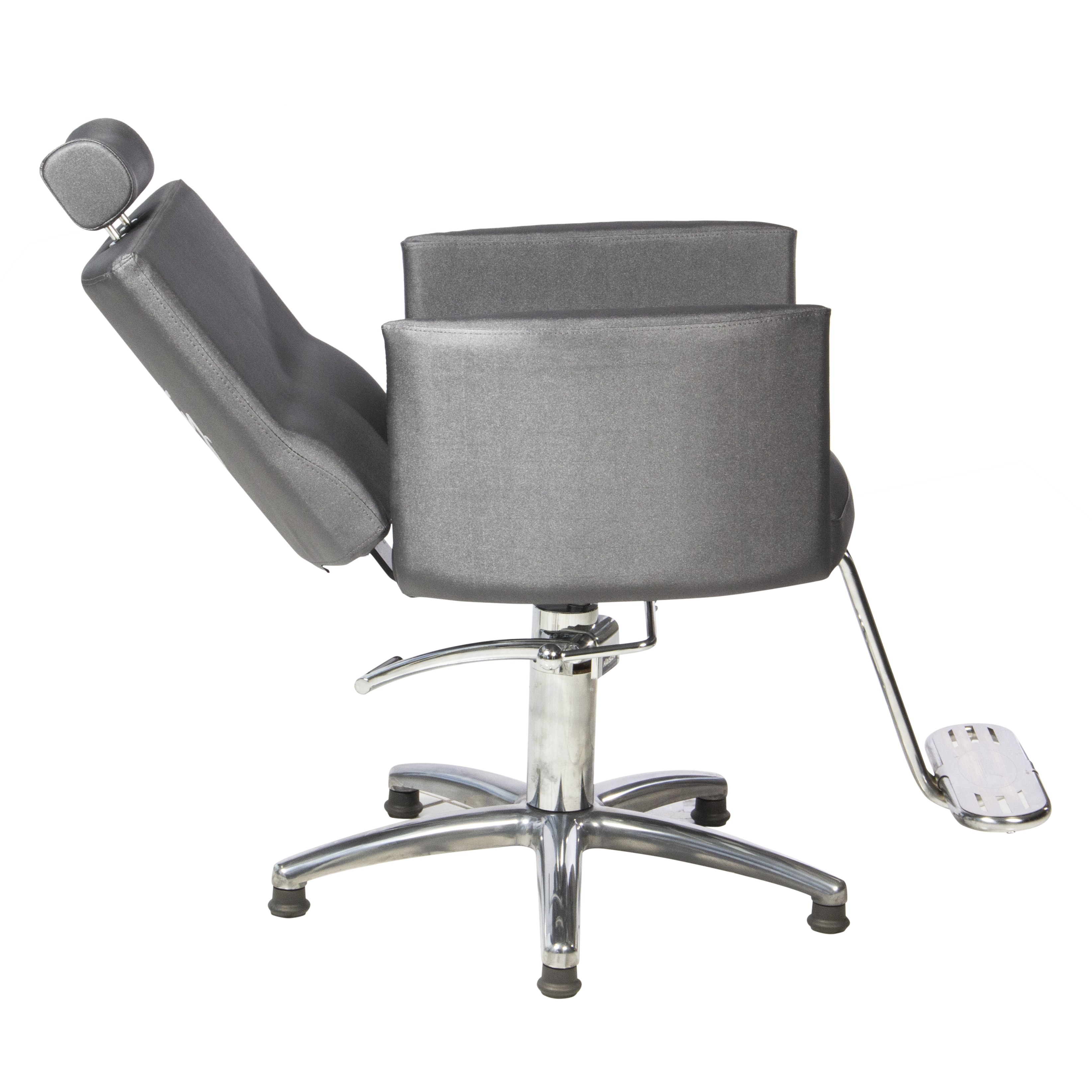 Além de ser ótima para corte, é reclinável, excelente para maquiagem. Tem estrutura de madeira completamente estofada, com apoio de cabeça, revestida na cor que mais combina com seu ambiente, entre muitas opções de courvin de alta qualidade.