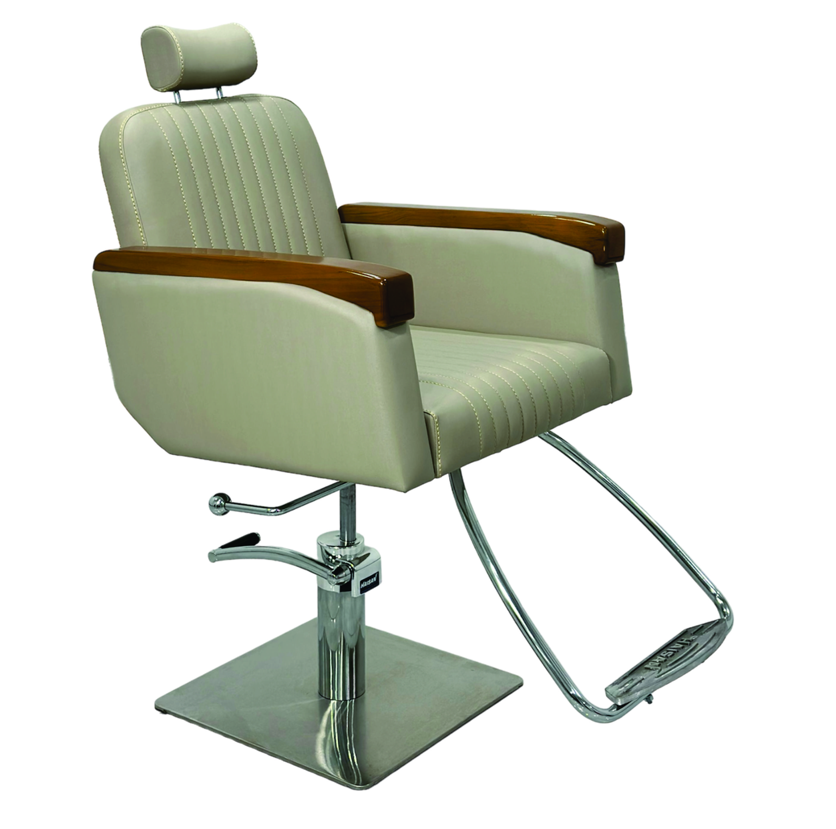 E é também uma poltrona para maquiagem, pelo reclínio suave e apoio de cabeça. O sistema hidráulico para controle de altura tem acionamento suave.