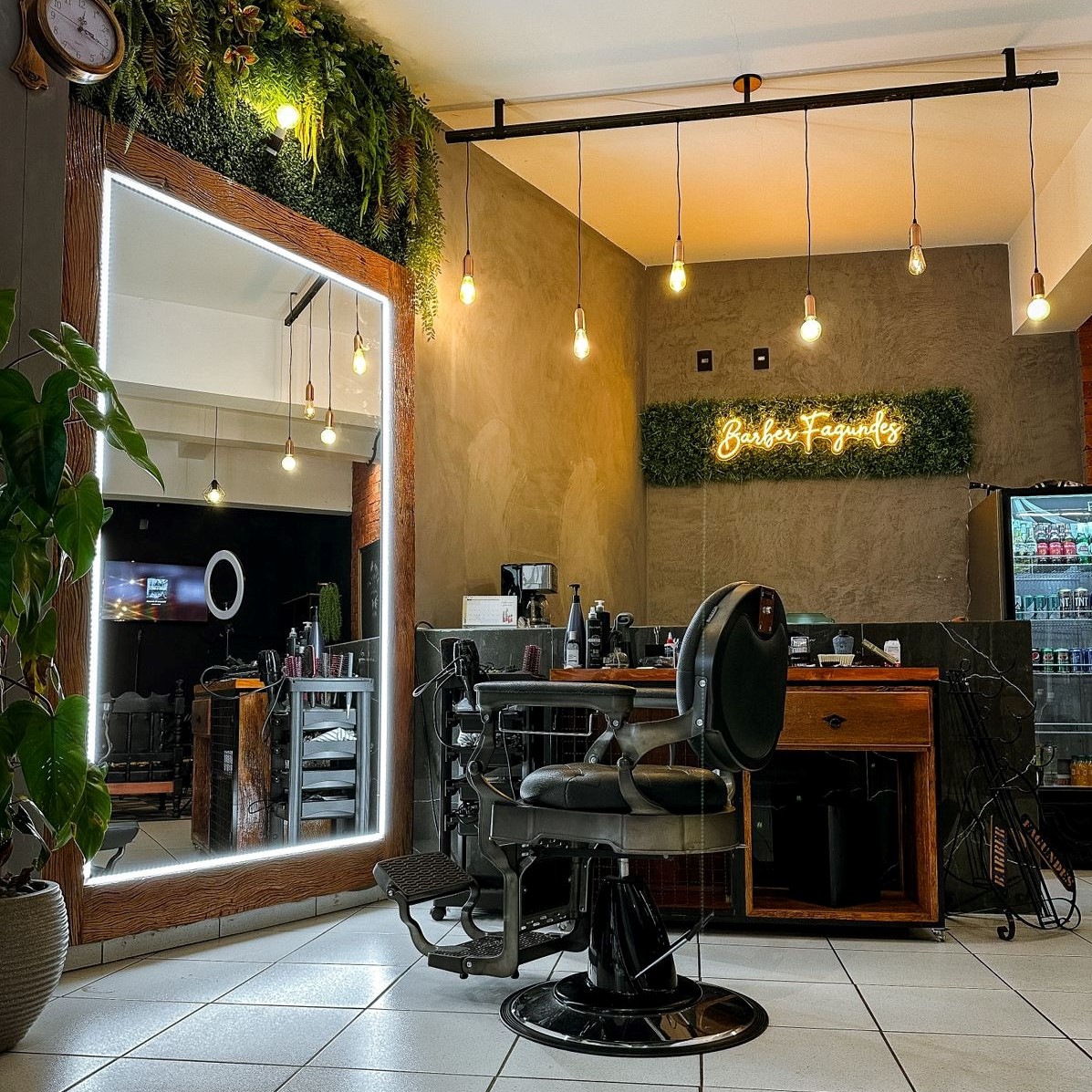 Barbearia de estilo retrô encontra na poltrona de barbeiro Thelonious uma opção de qualidade e design refinado.