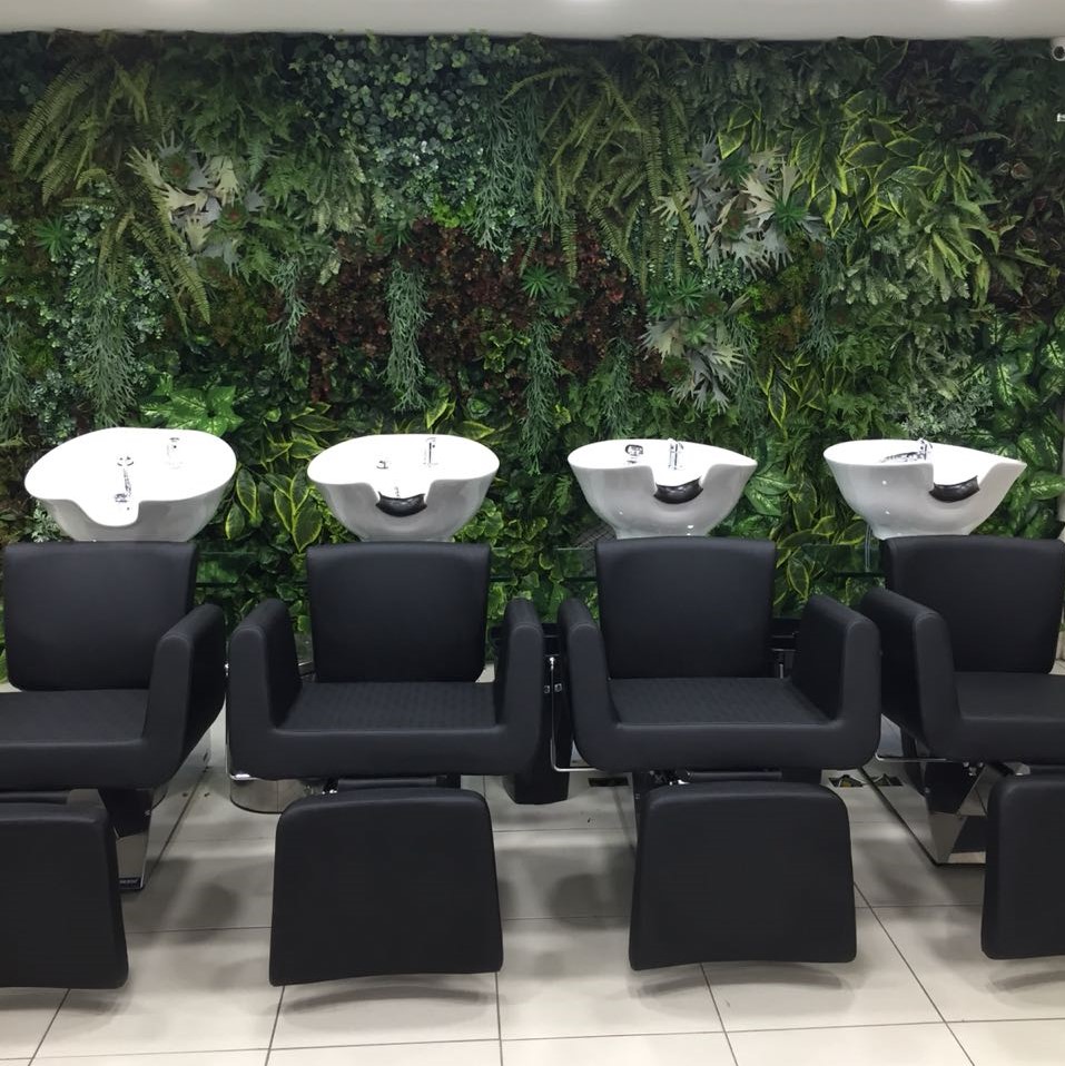 A cuba de porcelana branca ou preta é móvel e ergonômica, com regulagem suave, proporcionando conforto ao cliente. Tem misturador monocomando, ralo especial para reter os fios de cabelos, protetor de pescoço e sifão extensivo.